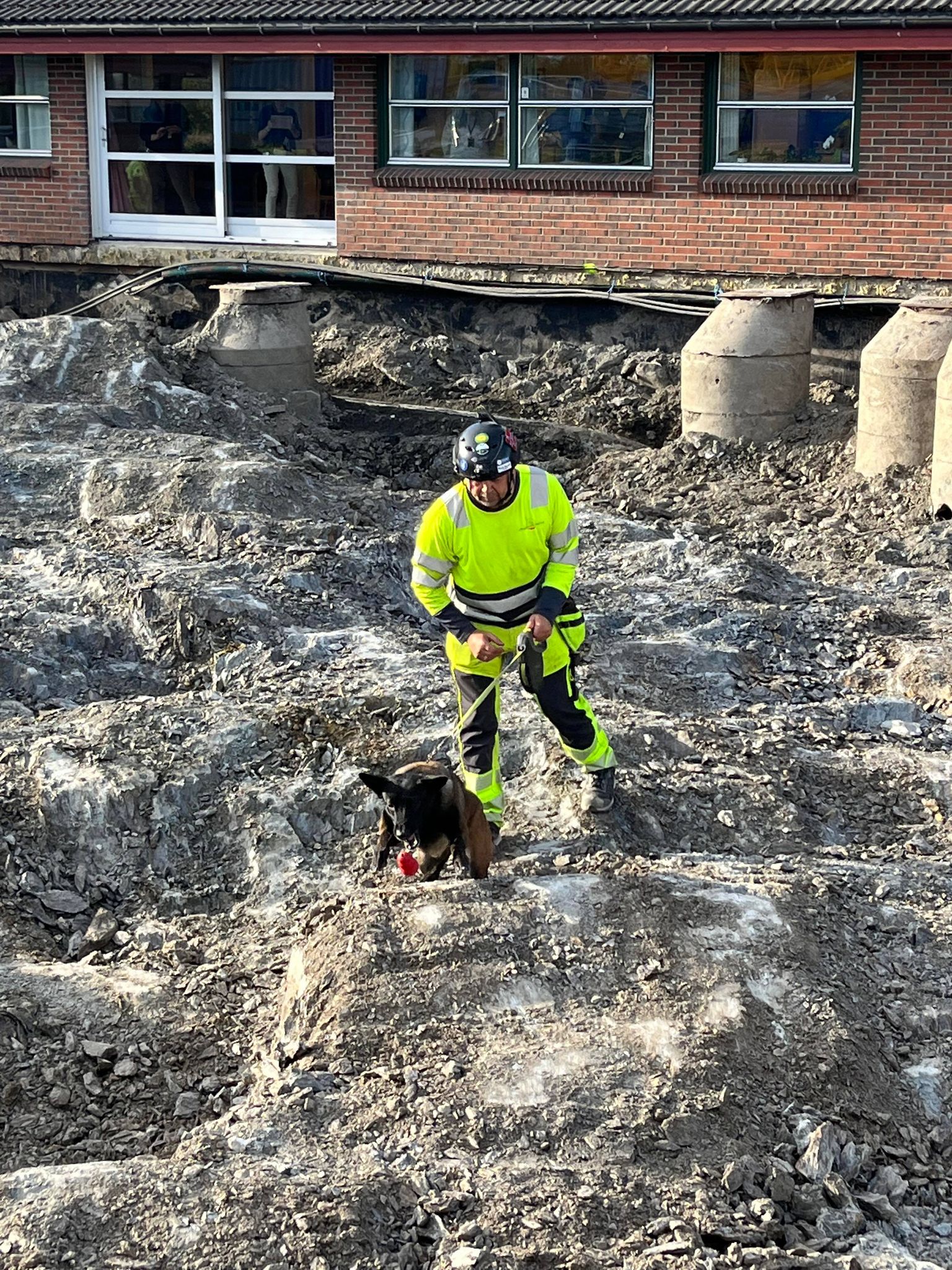 Spesialtrente hunder fra eksplosivhund.no kom inn for å sjekke hele området, for å avdekke om det er flere tilfeller og gjenværende sprengstoff.