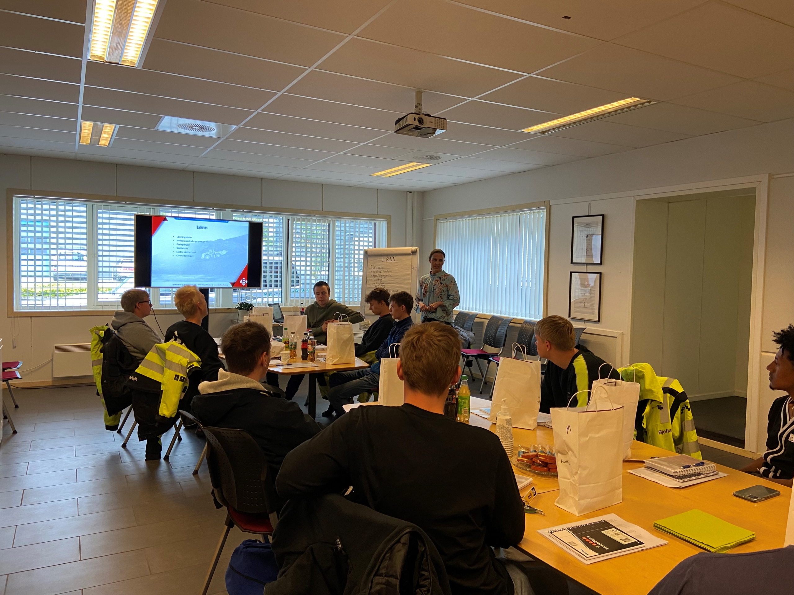 20 flotte ungdommer er i full gang med læretiden sin i Bjelland AS. I går samlet de seg til pizza og laserkurs i Bjelland bygget. Daglig leder Joakim Hetland fortalte engasjert om både laser og masseberegning.